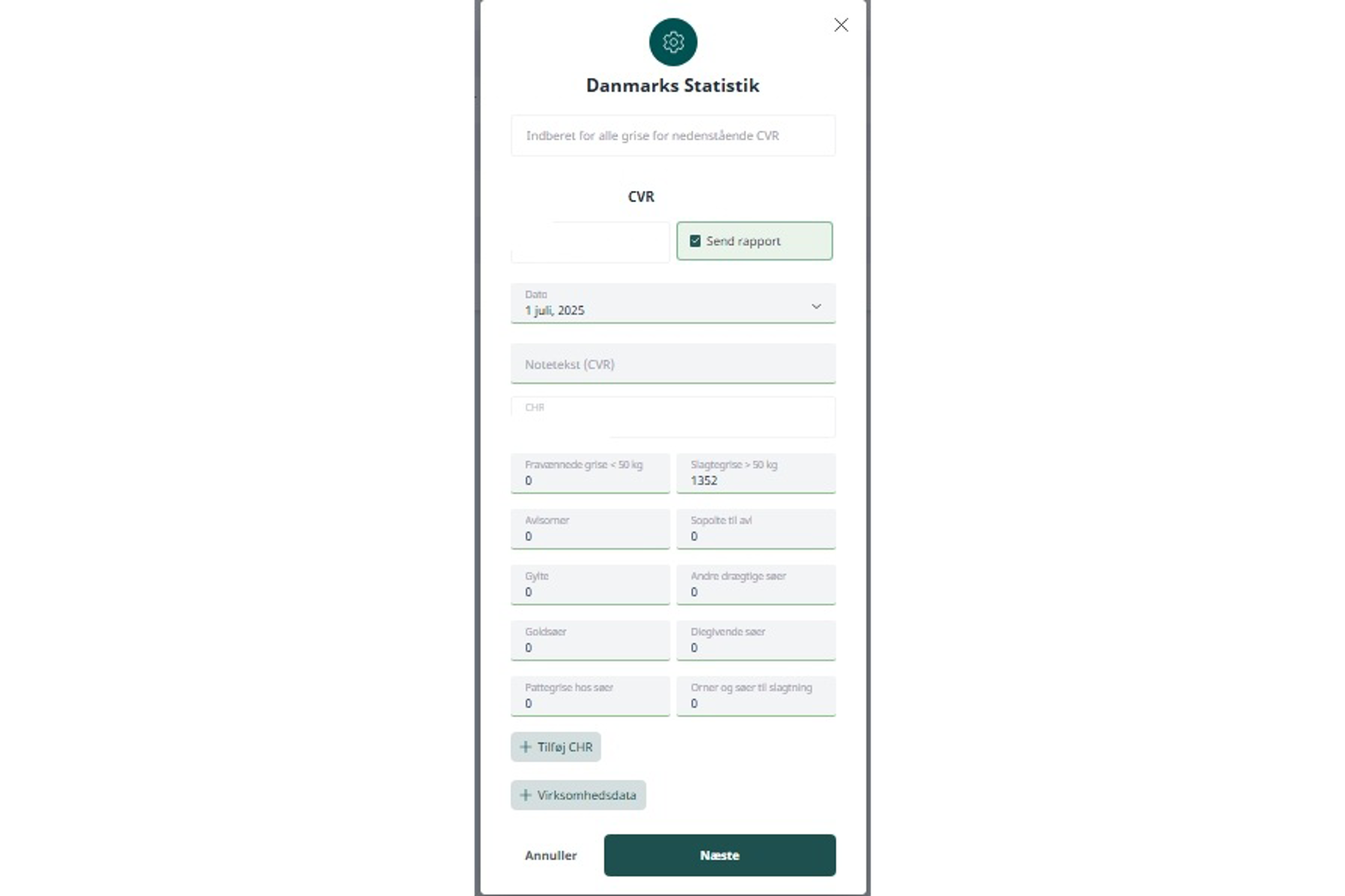 Husk, det er ejerens ansvar at det data der sendes til Danmarks Statistik, er korrekt. Det er vigtigt, at der ikke indberettes grise for det samme CVR nummer, fra flere forskellige systemer.