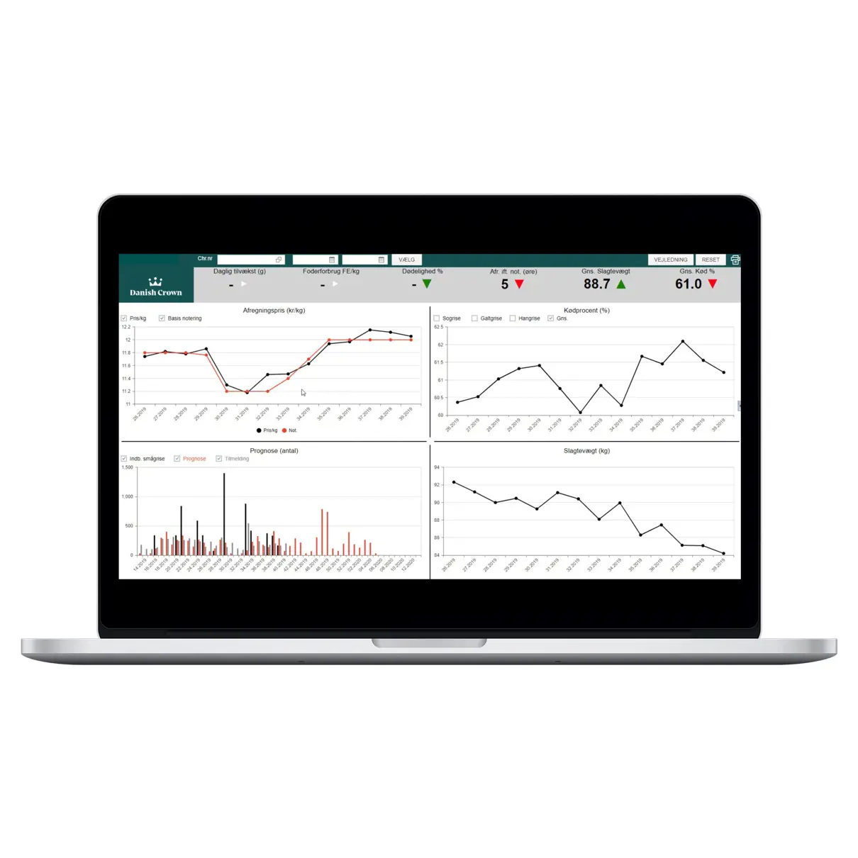 Snart vil du også kunne få automatisk beregning daglig tilvækst af dine grise, og se dine data for bæredygtighed.