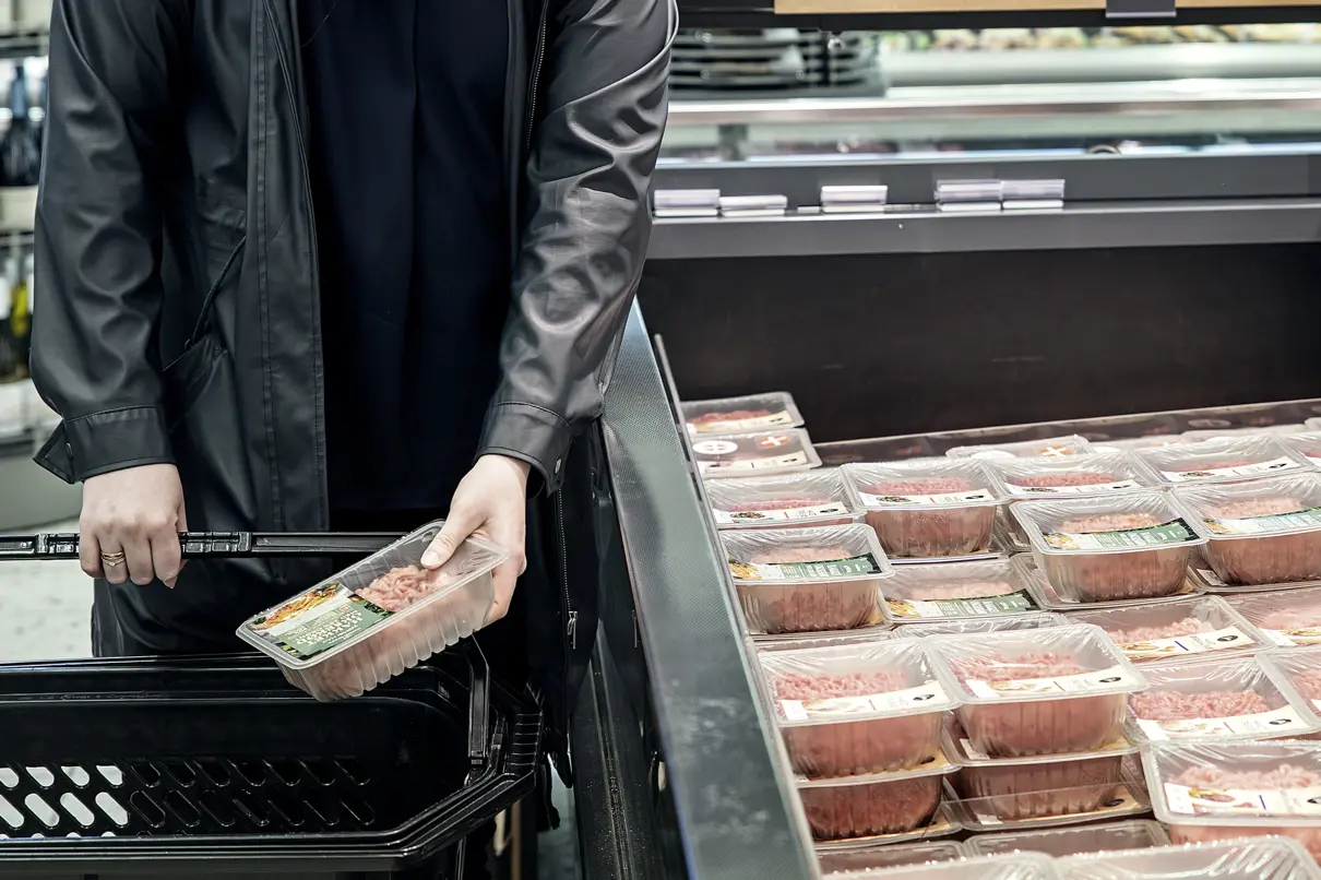 Hos REMA 1000 forklarer kategorichef Jonas Garly Sørensen, at discountkæden har flyttet ca. en tredjedel af sin markedsføring fra almindeligt hakket oksekød til oksekød med grøntsager.