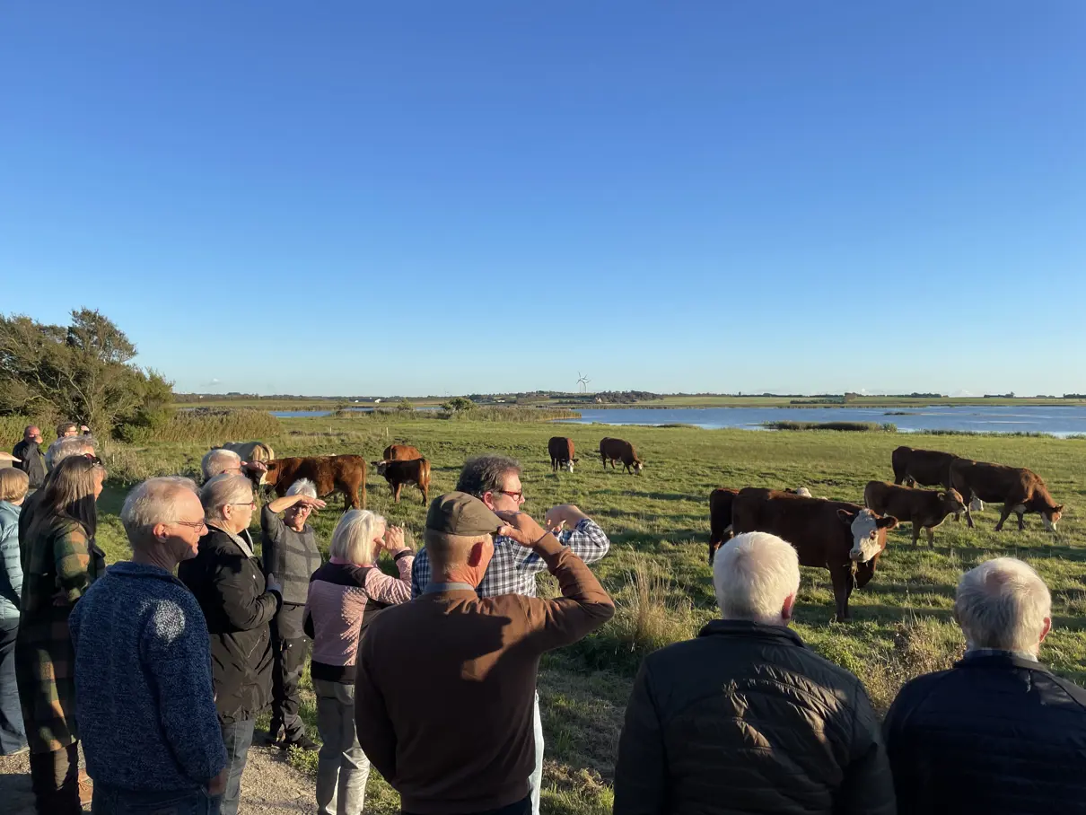 I Nordjylland var de fremmødte med på rundtur omkring naturarealerne ved Vilsted Sø, godt ti kilometer fra bedriften i Skarp Salling. Her afgræsser op mod et par hundrede dyr arealerne, som Holck Søndergaard har forpagtet fra Naturstyrelsen. Dyrene hos Erik Frandsen derimod græssede på arealerne omkring bedriften i Skjern, hvor de godt 20 ammekøer har adgang til både stald og frie arealer.